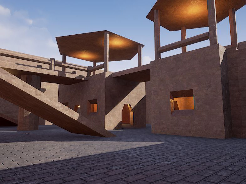 Capture the Flag project that I did in college with a strong focus on both balanced level design and preproduction documentation such as drawing floor plans for buildings and developing a world map. Map is designed to encourage teams to capture key locations of the map such as the small outpost locations near the main buildings.